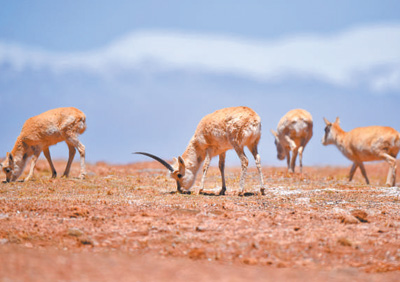 一群藏羚羊在可可西里地區(qū)活動。新華社記者 吳 剛攝
