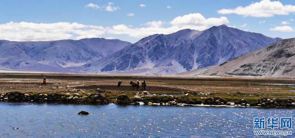 人們在西藏定結縣河邊的耕地上勞作(5月13日攝,手機照片)。新華社記者 沈虹冰 攝
