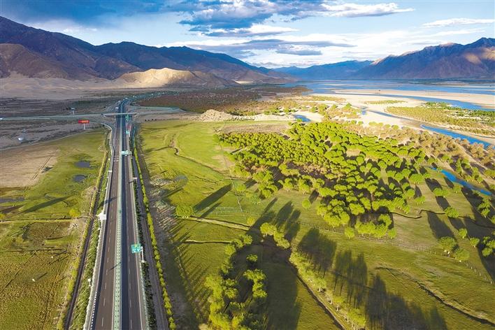 雅魯藏布江是我國(guó)最長(zhǎng)的高原河流,是西藏人民的“母親河”。通過(guò)近40年的不懈努力,曾飽受風(fēng)沙侵害的雅魯藏布江山南段沿岸已被郁郁蔥蔥的林木覆蓋,基本形成了一條“綠色長(zhǎng)廊”。