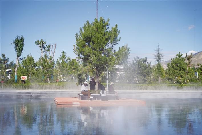 當(dāng)日,公園內(nèi)人來(lái)人往,很是熱鬧。人工湖水清澈見(jiàn)底,景觀橋蜿蜒伸向遠(yuǎn)方,遠(yuǎn)處的青山,與近處的綠水,勾勒出一幅絕美的風(fēng)景圖。老人在湖邊的座椅上休息,孩子跟著父母在公園內(nèi)“打卡”留念,眼前的情景處處彰顯著山南市民如今的幸福生活。