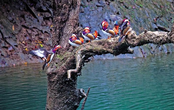 這是在湖南省邵陽市城步苗族自治縣境內(nèi)的南山國家公園體制試點(diǎn)區(qū)拍攝的鴛鴦(2018年10月16日攝)。新華社發(fā) (湖南南山國家公園管理局供圖)