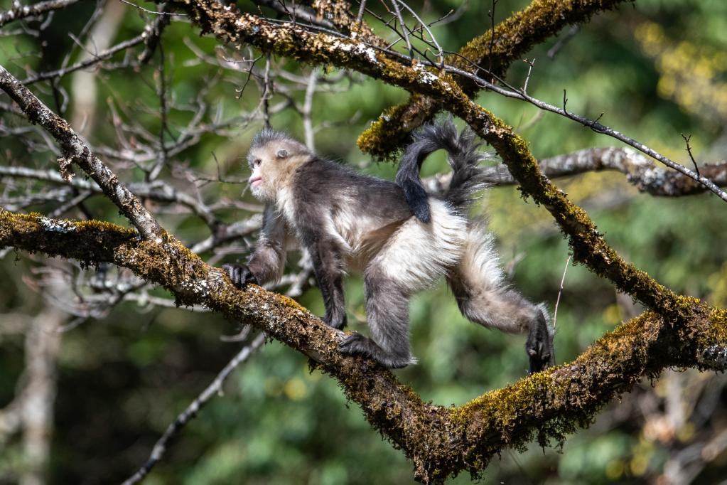 滇金絲猴分布在我國喜馬拉雅山南緣橫斷山系的云嶺山脈,金沙江、瀾滄江之間面積約2萬平方公里的區(qū)域內(nèi)。這些“雪山精靈”長年生活在人跡罕至的高山地帶,堪稱世界上除人類以外棲息海拔最高的靈長類動(dòng)物。