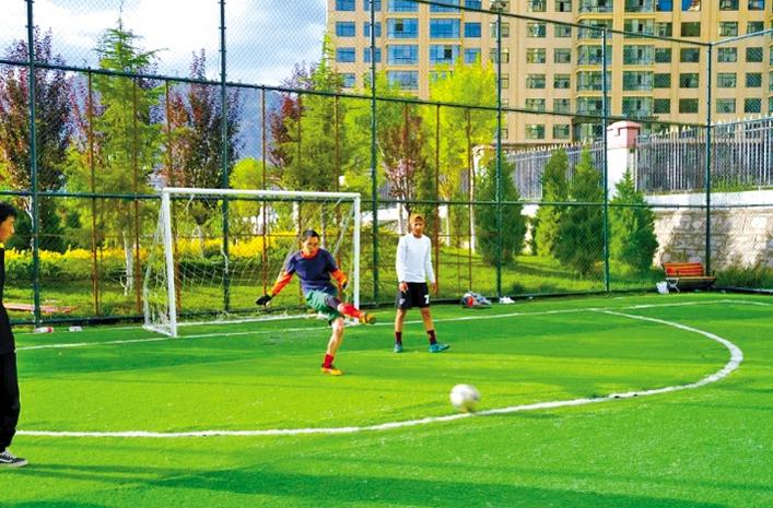 圖為熱木崗公園里,居民在踢球。