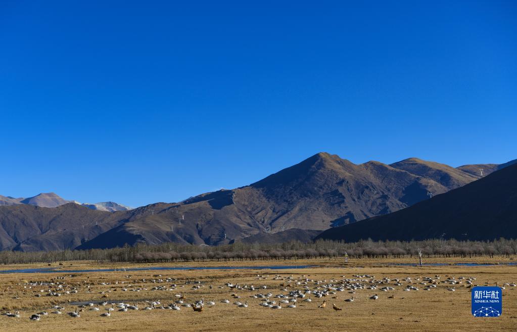 唐嘎鄉(xiāng)位于拉薩市達孜區(qū)東北部,這里每年冬季都會迎來黑頸鶴、斑頭雁、赤麻鴨等候鳥。這些在此越冬的“客人”和周邊的田園、濕地共同構成高原冬季美景。