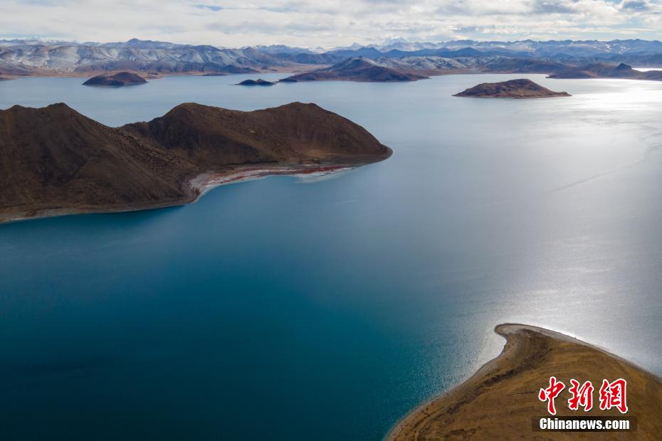12月28日,羊卓雍錯湖岸風光。羊卓雍錯藏語意為“碧玉湖”,與納木錯、瑪旁雍錯并稱西藏三大“圣湖”。羊卓雍錯湖面海拔4441米,東西長130公里,南北寬70公里,湖岸線總長250多公里。28日,中新網記者自駕前往羊卓雍錯,翻過山口,到達湖岸東北面的日托寺,沿途盡是冬日高原湖光山色之美,無人機航拍鏡頭下,遠處雪山、冰川巍峨屹立,堪稱絕美。 江飛波 攝