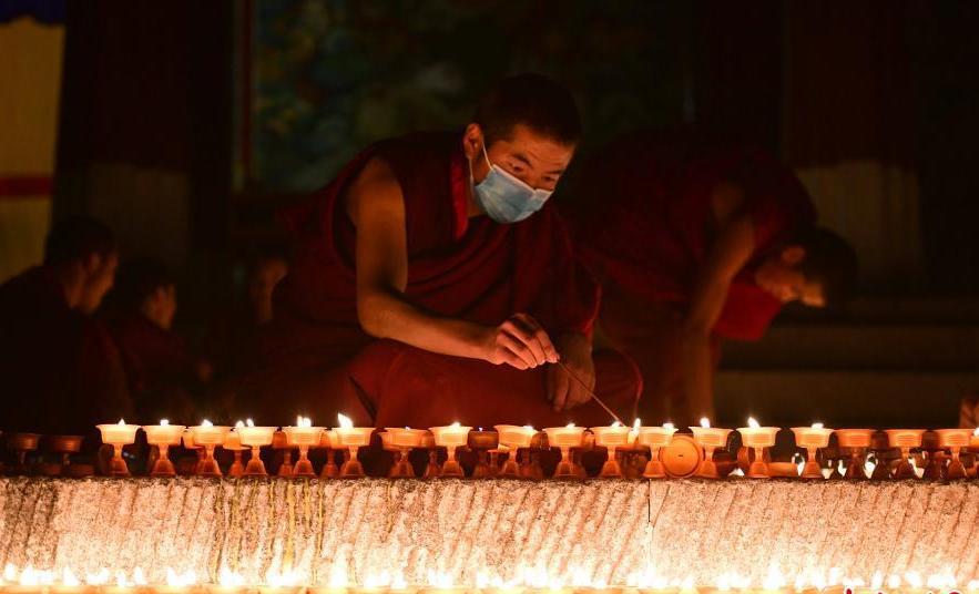 12月29日,拉薩色拉寺僧人點(diǎn)燃酥油燈。[詳細(xì)]