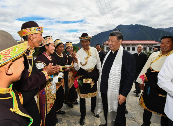 2021年7月21日,在慶祝西藏和平解放70周年之際,習(xí)近平來到西藏。在林芝市巴宜區(qū)林芝鎮(zhèn)嘎拉村,習(xí)近平聽取嘎拉村發(fā)揮黨建引領(lǐng)作用、帶領(lǐng)群眾增收致富、提升基層治理水平等介紹,走進(jìn)村便民服務(wù)中心、“綠色銀行”兌換商店、衛(wèi)生室等詳細(xì)了解有關(guān)情況。