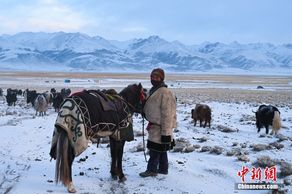 1月27日,當(dāng)雄縣龍仁鄉(xiāng)烏達(dá)村牧民在雪中放牧。當(dāng)雄縣位于西藏自治區(qū)拉薩市北部,距拉薩市區(qū)170公里?!爱?dāng)雄”,藏語(yǔ)意為“天選牧場(chǎng)”,平均海拔約4200米,草場(chǎng)廣闊,土地肥沃。 中新社記者 貢嘎來(lái)松 攝