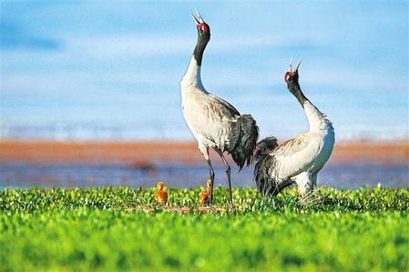 棲息在尕海濕地的國(guó)家一級(jí)保護(hù)動(dòng)物黑頸鶴。 新甘肅·甘肅日?qǐng)?bào)通訊員 張勇