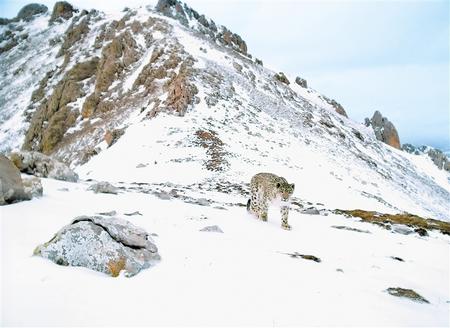 紅外線相機(jī)監(jiān)測(cè)到的國(guó)家一級(jí)保護(hù)動(dòng)物雪豹。(甘南州生態(tài)環(huán)境局供圖)