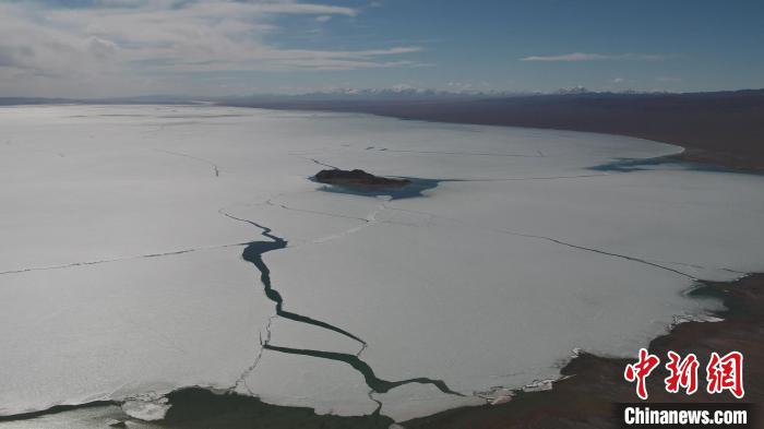 巍巍高原上,遼闊的阿其克湖冰雪初融,消融的冰面上,縱橫交錯(cuò)的冰層裂痕筆走龍蛇,氣勢恢宏?!∩轩i 攝