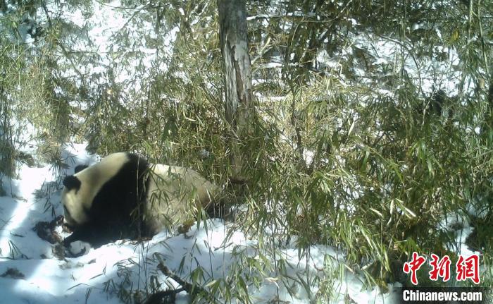 3月22日,大熊貓國(guó)家公園四川雅安市寶興縣蜂桶寨片區(qū)通報(bào)稱,近日,工作人員在收集野外紅外線相機(jī)時(shí),發(fā)現(xiàn)拍攝到了野生大熊貓?jiān)谘┑刂泻人恼滟F影像。