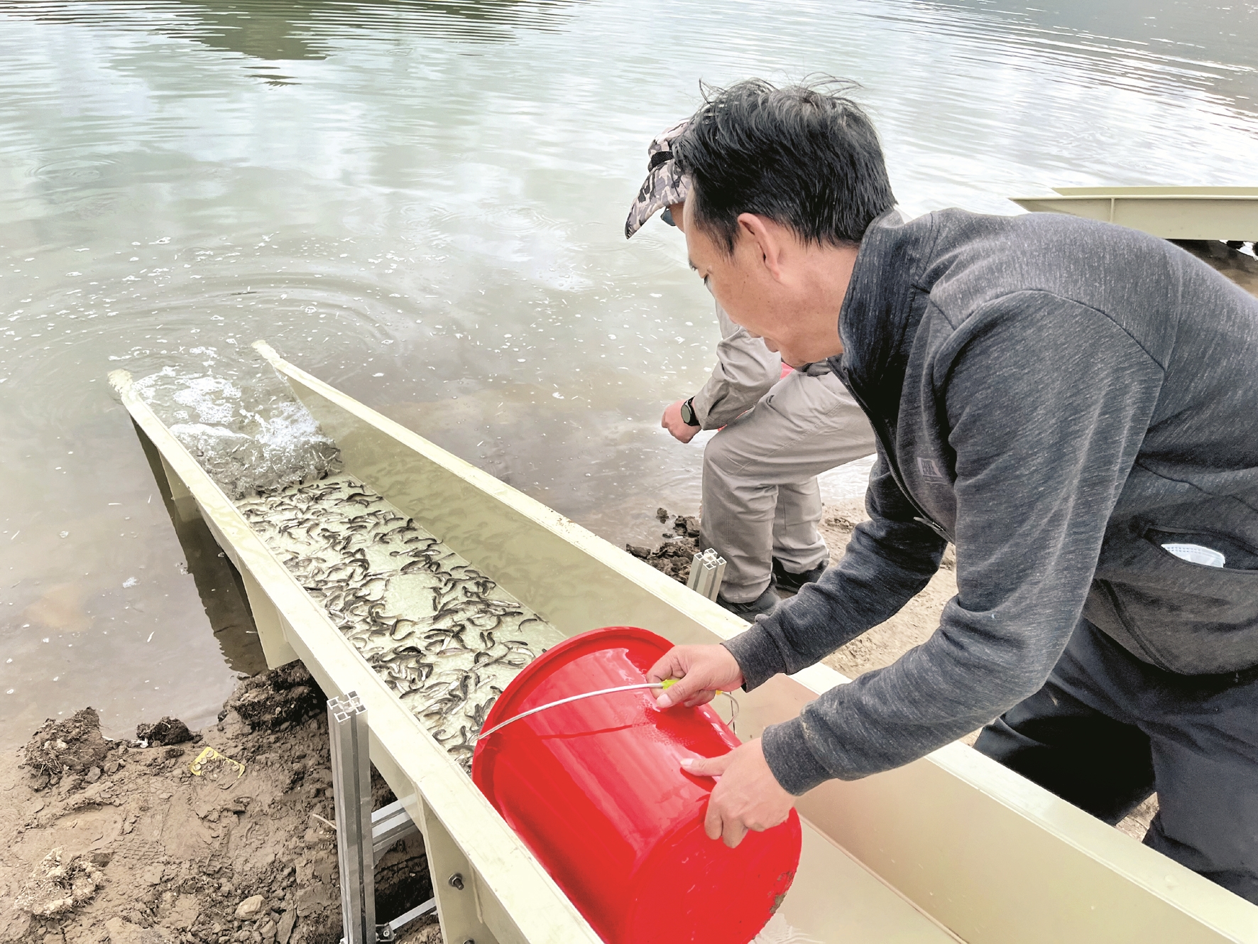 圖為工作人員正在放流魚苗。 拉薩融媒記者 莫瑞英攝