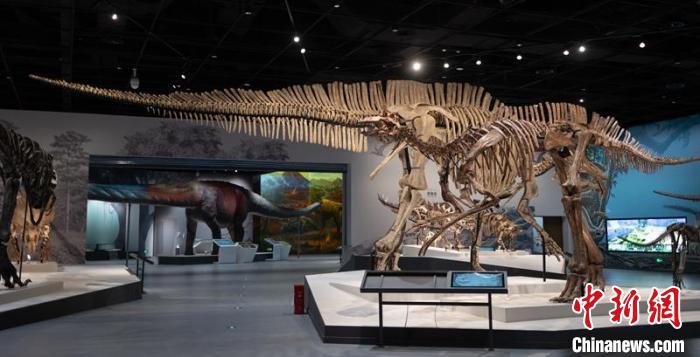成都自然博物館恐龍?zhí)矫貜d的合川馬門(mén)溪龍化石。 成都住建供圖