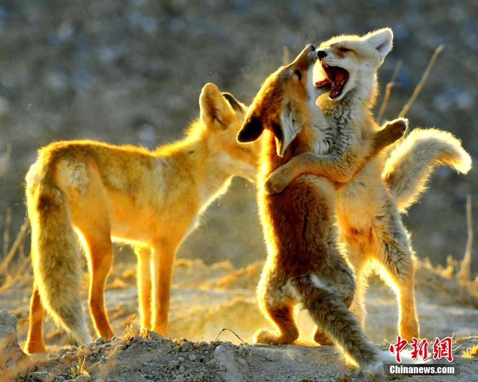 連日來(lái),每到傍晚,在中國(guó)“鹽湖城”青海省格爾木河畔的濕地,多只赤狐在濕地嬉戲玩耍。宗布爾 攝