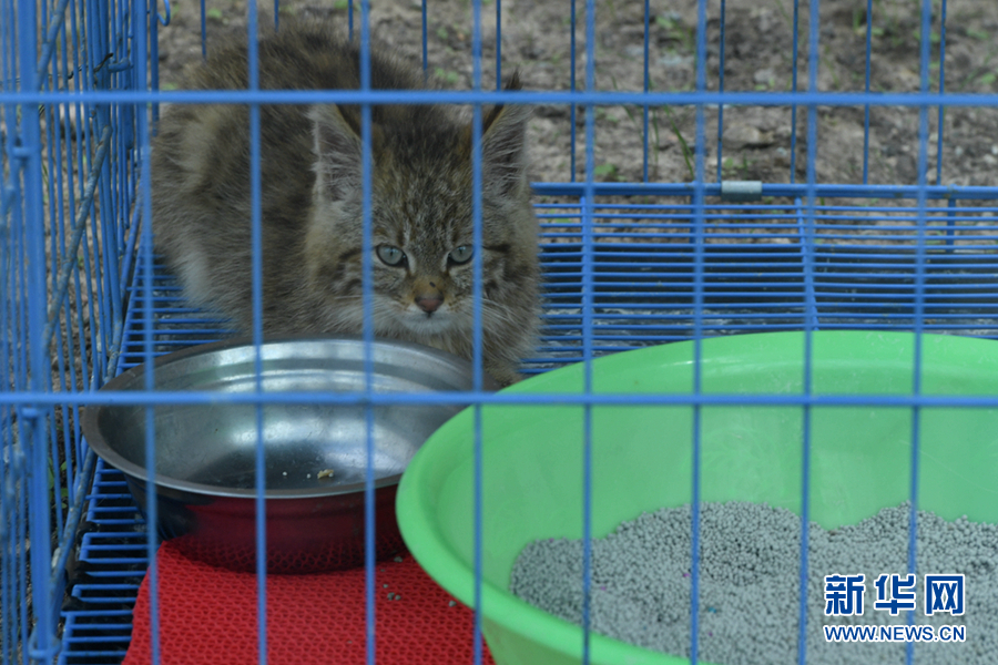 圖為祁連山國家公園青海片區(qū)野生動物救護繁育中心內(nèi)救助的荒漠貓。新華網(wǎng) 卡婭梅朵 攝