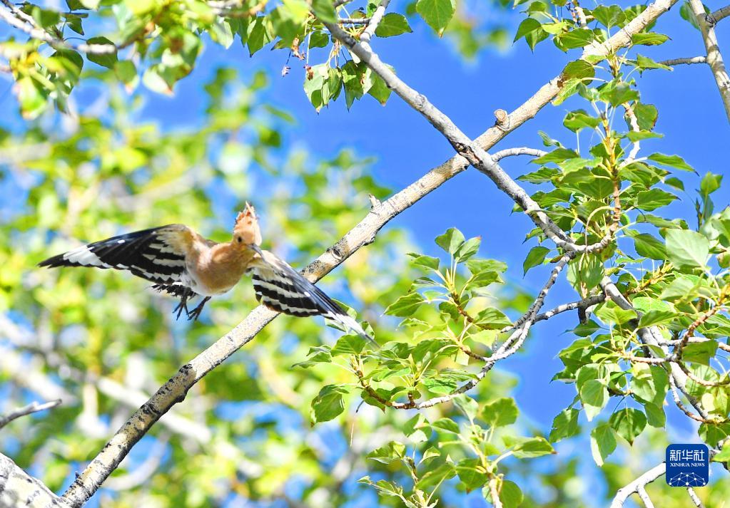 戴勝在樹叢間飛舞(8月25日攝)。新華社記者 張汝鋒 攝