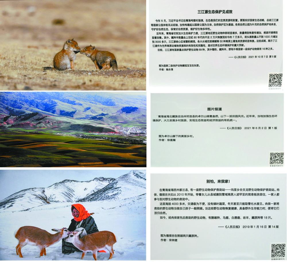 記者在新聞中心關(guān)注反映青海生態(tài)的照片。