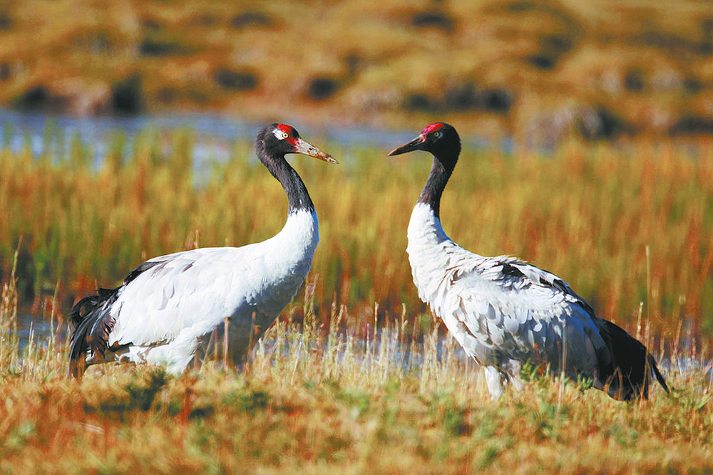 黑頸鶴“夫妻”。青海湖國家級(jí)自然保護(hù)區(qū)管理局供圖