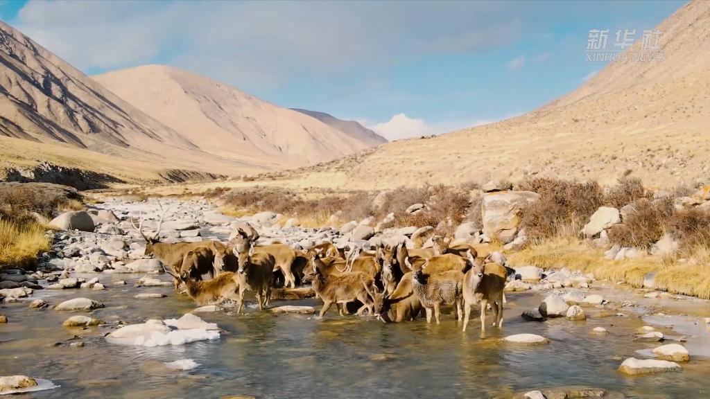 青海海西:上百只白唇鹿現(xiàn)身柏樹(shù)山