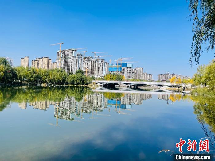 圖為西寧市北川濕地公園河水碧波蕩漾。 孫睿 攝