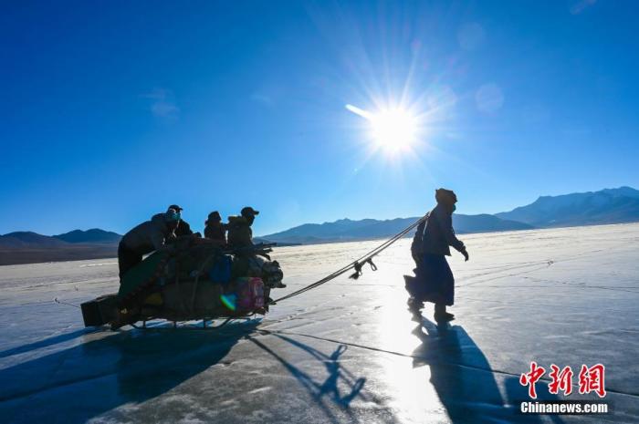 這個(gè)邊境小村3日迎來(lái)了一年一度的“趕羊”盛事。村民們將1400余只羊由岸邊通過(guò)厚實(shí)的冰面趕往湖心島牧場(chǎng)。普姆雍措被稱為“仙女之淚”,位于西藏山南市浪卡子縣,每到冬季極寒時(shí),便是羊群轉(zhuǎn)牧場(chǎng)的好時(shí)機(jī)。