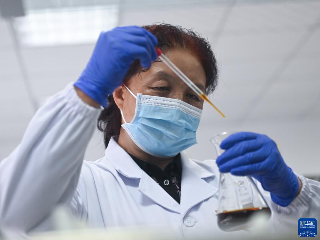 張錦梅在青海省西寧市林業(yè)科學(xué)研究所實(shí)驗(yàn)室內(nèi)配制藥劑(2022年9月14日攝)。新華社記者 張龍 攝