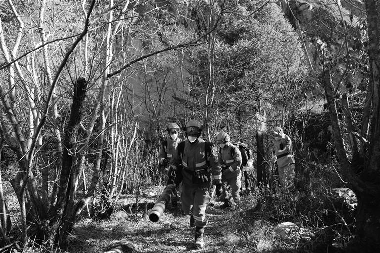 陡峭的懸崖、崎嶇的山路、布滿荊棘的叢林……消防員們背負(fù)著沉重的防火裝備翻山越嶺,腳、肩膀被磨出血泡,手、臉被劃出一道道口子,巡山時(shí)每名消防員每天會(huì)“報(bào)廢”一雙襪子。盡管身上傷痕累累,他們卻將裝備維護(hù)得很好。亞東駐防分隊(duì)分隊(duì)長次仁多布拉說:“26斤的防火裝備加上消防員們身上的其他裝備,全部加起來一共有50斤左右。每個(gè)裝備定人定位,所有人都像愛護(hù)眼睛一樣愛護(hù)裝備,保證裝備始終保持良好的戰(zhàn)備狀態(tài)?!?/p>