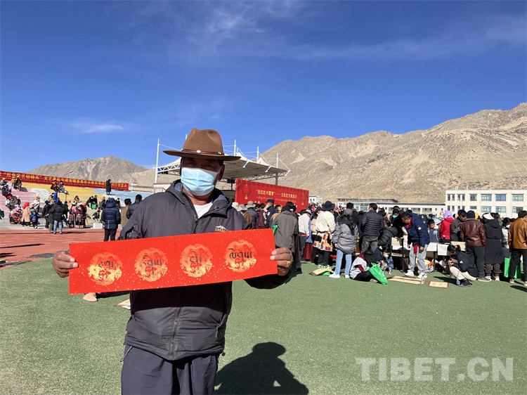 “我來自那曲安多縣,在森布日生活已有近一年,這里氣候暖,基礎(chǔ)設(shè)施齊全,真是趕上了好政策”66歲的多布杰說,他還主動(dòng)拿起書法家現(xiàn)場書寫并贈送給他的吉祥對聯(lián)說:“今天真是很開心,觀看了一場精彩的節(jié)目,還得到了書法家寫的‘扎西德勒’吉祥對聯(lián),這個(gè)我要貼在家里的門窗上”。