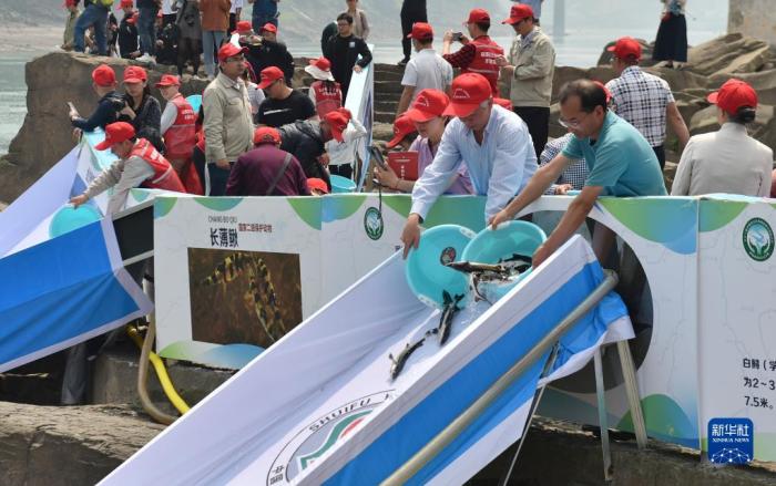長江上游珍稀特有魚類國家級(jí)自然保護(hù)區(qū)云南段增殖放流活動(dòng)在云南省水富市舉行(2021年4月23日攝)。新華社發(fā)