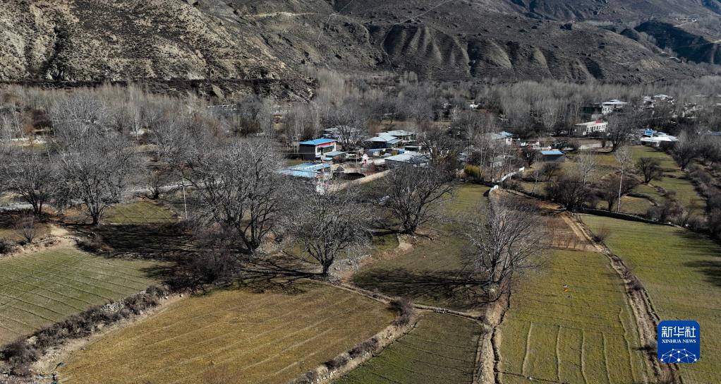 核桃樹環(huán)抱的山南市加查縣拉崗村(2月1日攝 無人機(jī)照片)。新華社記者晉美多吉 攝
