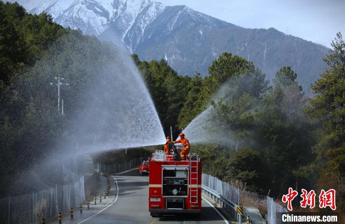 重點(diǎn)林區(qū)開展灑水增濕作業(yè)。 西繞拉翁 攝