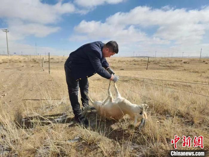 據(jù)介紹,3月12日11時許,青藏集團公司西寧電務段哈爾蓋信號車間哈爾蓋信號工區(qū)的3名職工在徒步前往管內(nèi)那仁中繼站檢修信號設備途中發(fā)現(xiàn),有動物掛在網(wǎng)圍欄,無法掙脫。