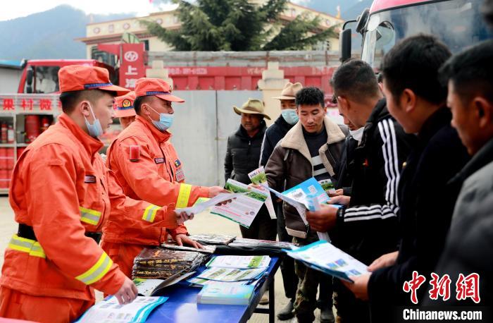 林芝市森林消防支隊指戰(zhàn)員在進行防火宣傳知識講解。 西繞拉翁 攝