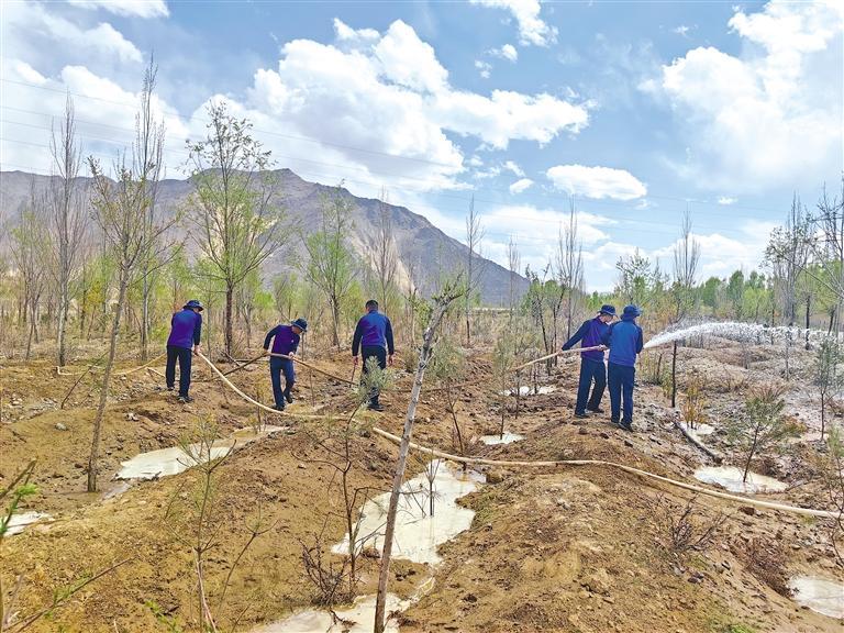 近日,西藏森林消防總隊(duì)訓(xùn)練大隊(duì)組織消防指戰(zhàn)員,前往拉薩市曲水縣才納鄉(xiāng)植樹示范林區(qū),開展示范林區(qū)綠植的澆灌工作,確保種植的苗木健康成長,綠化成果不受損失。據(jù)悉,今年春季,該大隊(duì)積極響應(yīng)西藏自治區(qū)“提質(zhì)增綠行動(dòng)”會(huì)議精神,在植樹示范林區(qū)種植新樹苗3000余株,為拉薩再添新綠。