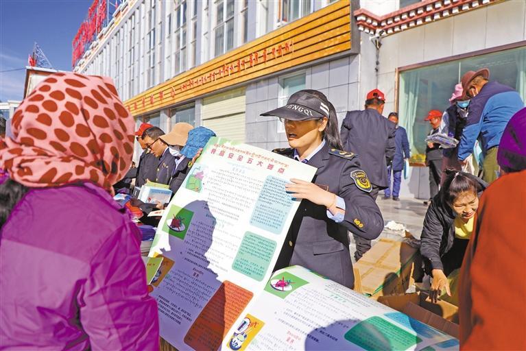 圖為阿里地區(qū)市場(chǎng)監(jiān)管局工作人員為群眾講解食品安全知識(shí) 。記者 洛桑旦增 攝