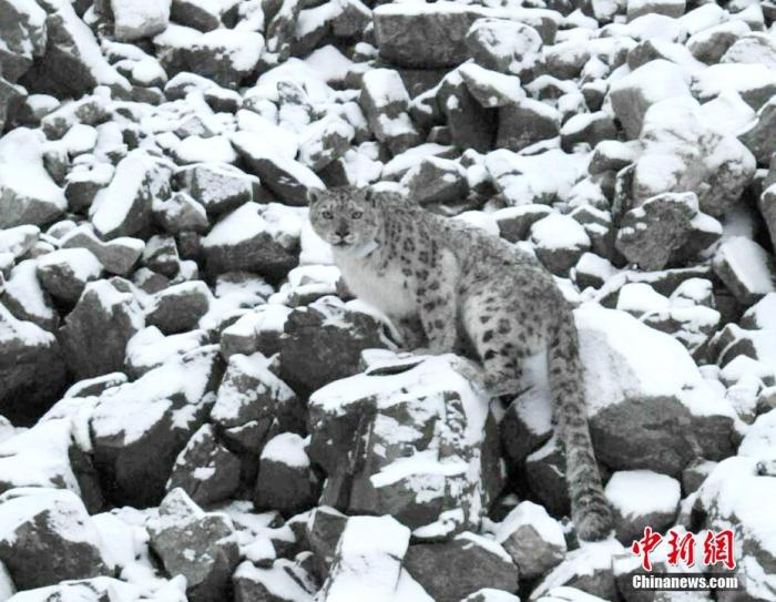 資料圖為被追蹤雪豹在原地被放歸。 中新社發(fā) 祁連山國家公園青海省管理局 供圖