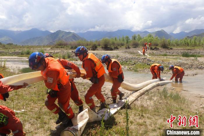 圖為進行排澇演練。西藏自治區(qū)森林消防總隊拉薩市大隊 供圖