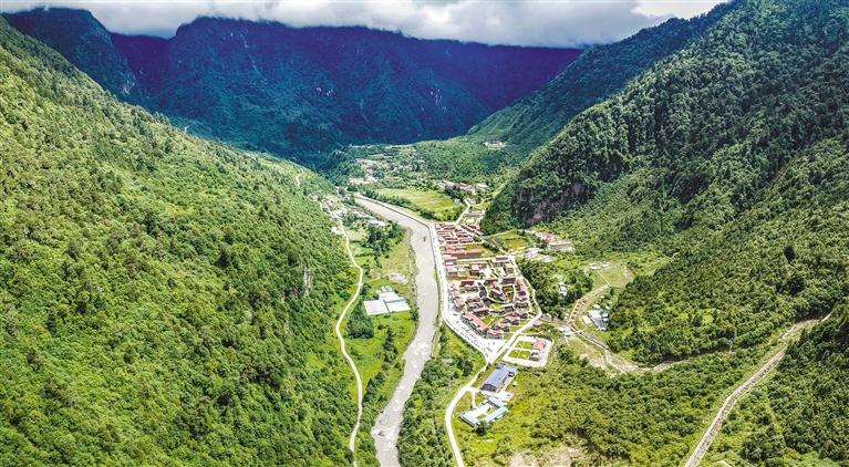 圖為俯瞰勒布溝。(無(wú)人機(jī)照片)新華社記者 姜帆 攝