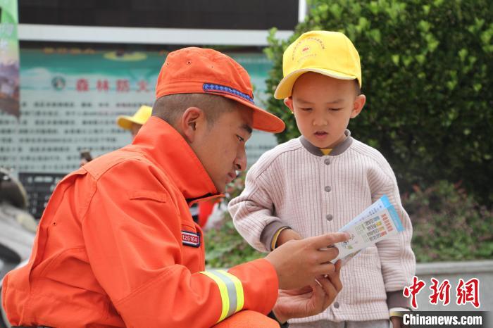 圖為森林消防隊員向小朋友講解森林火災(zāi)危害。西繞拉翁 攝