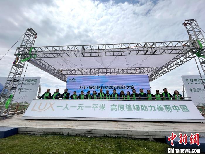 當(dāng)日,“力士·綠哈達(dá)行動(dòng)”2023年草場見證儀式在青海省海南藏族自治州貴德縣拉西瓦鎮(zhèn)巴卡臺(tái)草原舉行。來自中國各地的企業(yè)代表以“一人一元一平米”的形式,共同參與到青藏高原生態(tài)保護(hù)中。