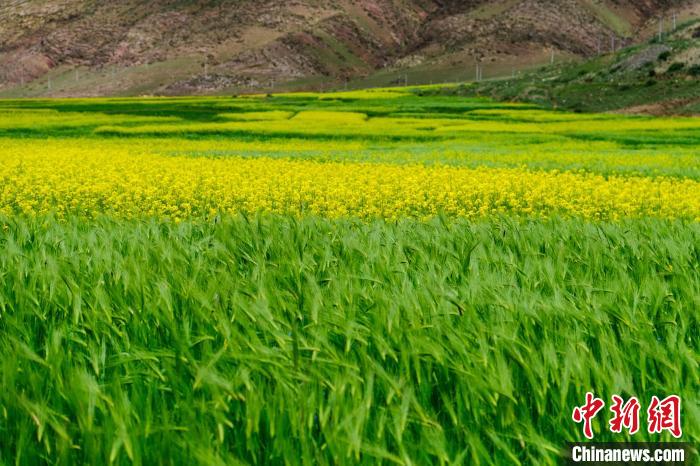 圖為西藏拉薩堆龍曲沿岸種植的青稞與油菜。江飛波 攝