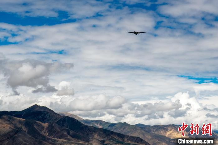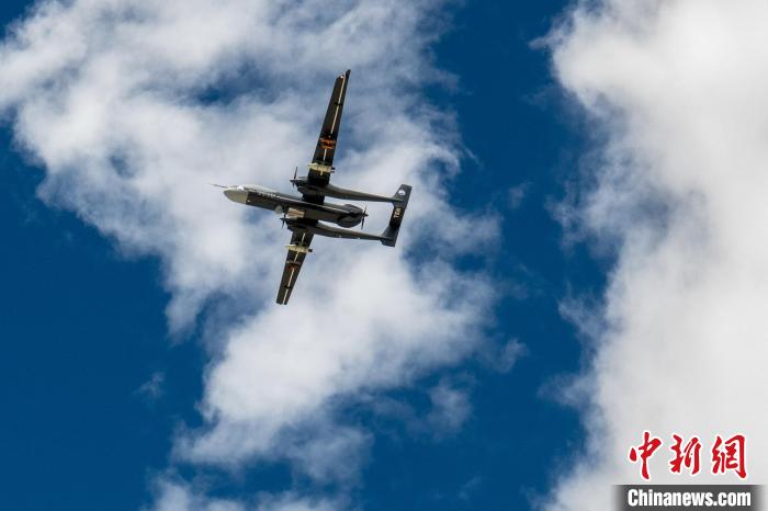 圖為“及時雨”大型無人機在高原飛行,進行人工增雨(雪)科學試驗。張歆平 攝