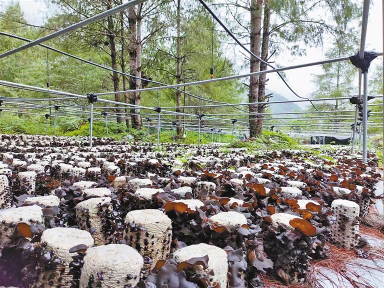 圖為格當(dāng)鄉(xiāng)布龍村林下種植場種植的黑木耳。郎玲 記者 王敏 攝