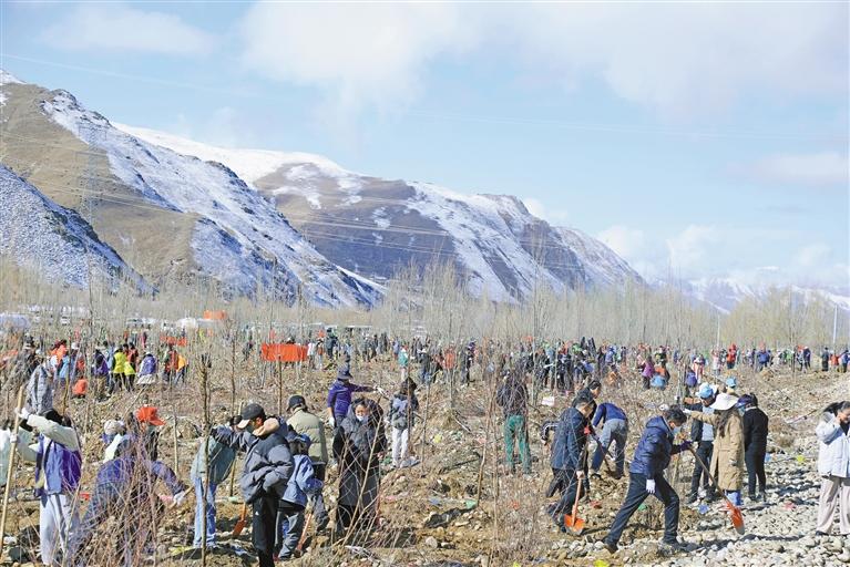 墨竹工卡縣干部職工秋季植樹(shù)現(xiàn)場(chǎng)。