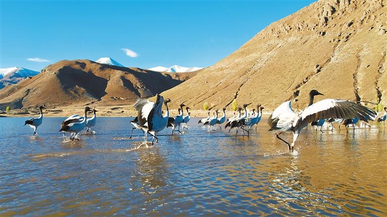近年來,西藏不斷加大黑頸鶴生存環(huán)境保護力度,黑頸鶴數(shù)量呈現(xiàn)逐年遞增的良好態(tài)勢。10月21日,記者從林周縣了解到,黑頸鶴“先遣隊”已抵達(dá)林周縣,開啟越冬模式。首批到達(dá)林周的黑頸鶴共有58只,主要棲息在虎頭山水庫和卡孜水庫。