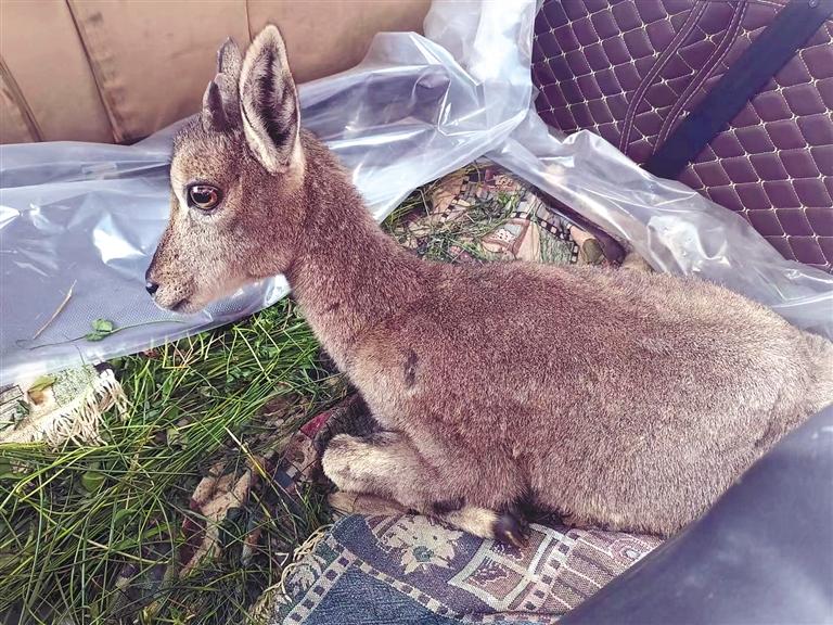 被林芝市林業(yè)和草原局工作人員救助的受傷巖羊在慢慢恢復(fù)。(林芝市林業(yè)和草原局提供)