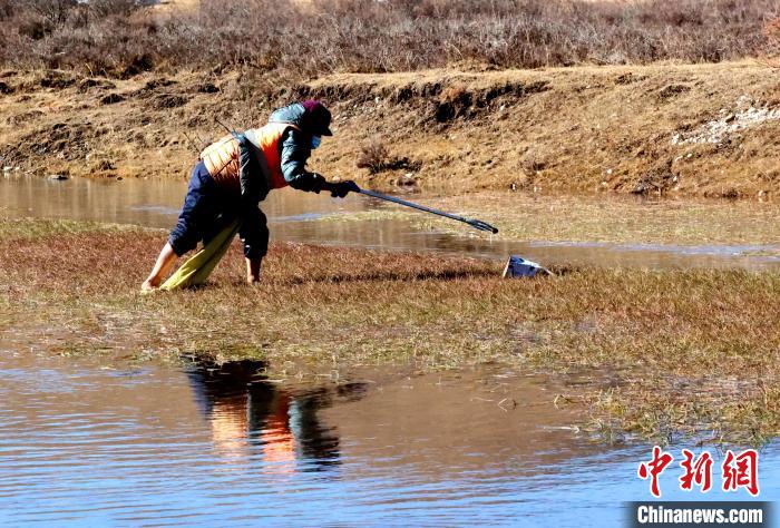 圖為管護(hù)員清理洮河沿線垃圾。薛蒂 攝