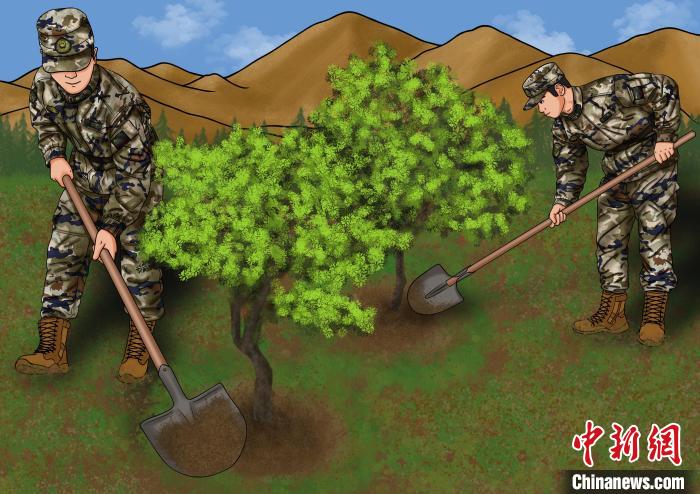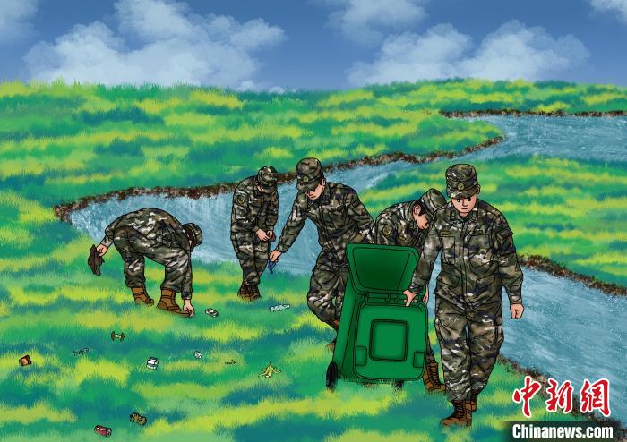青海武警手繪“環(huán)?!焙蠛粲醣Wo高原生態(tài)