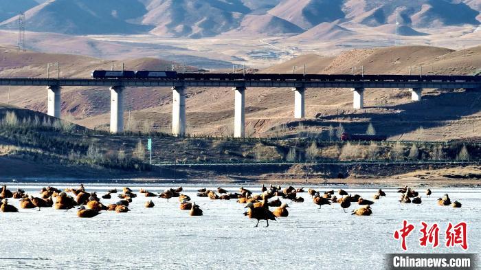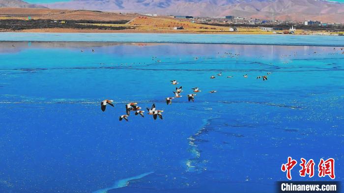 高原冬日,在位于青海湖北岸的青海省海北藏族自治州海晏縣境內(nèi),成群的赤麻鴨、綠頭鴨等鳥類現(xiàn)身青海省東大灘水庫,它們時(shí)而“泡湯”洗浴,時(shí)而振翅高飛,時(shí)而覓食嬉戲,展現(xiàn)出一幅冬日和諧的美好畫面。近年來,越來越多鳥類來到青海湖北岸覓食休憩,此時(shí)一半冰層一半碧波的東大灘水庫成了鳥類覓食的好去處。